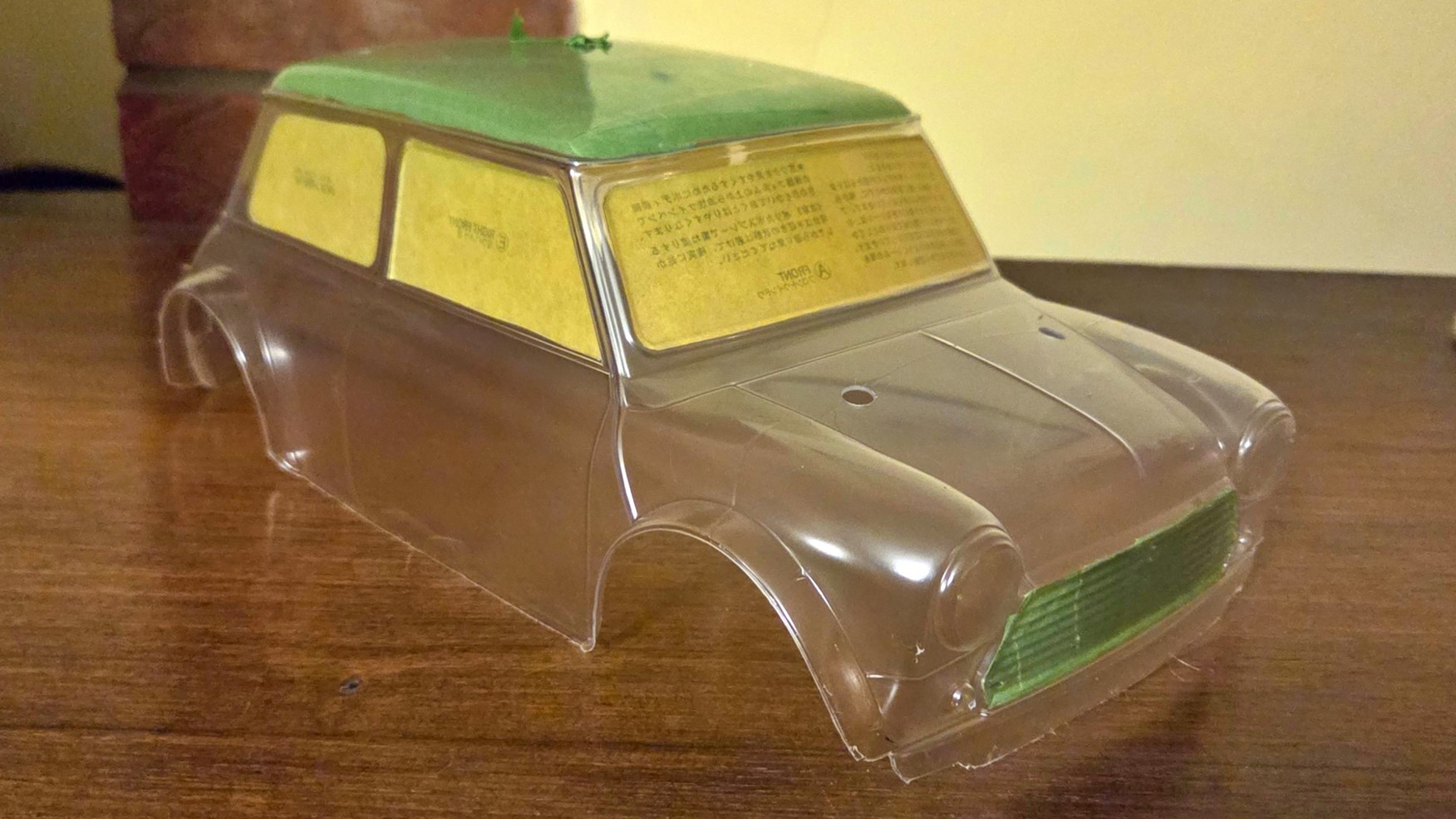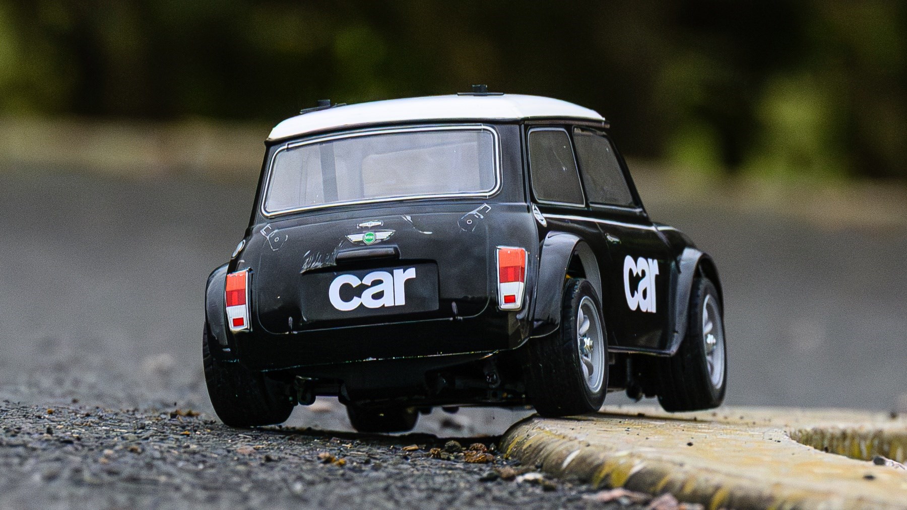 I’m not the best masker, so I was glad to see a white stripe that goes around the roof to hide the fuzzy line I’d left. The lesson here? Make sure you use fresh tape and smooth it down properly rather than dig out a roll that was at the bottom of a toolbox. The finished result looks great just sat on the shelf. It’s low and moody with no bumpers like something you’d see at the Goodwood Revival, and the wide Minilite wheels finish it off perfectly.
