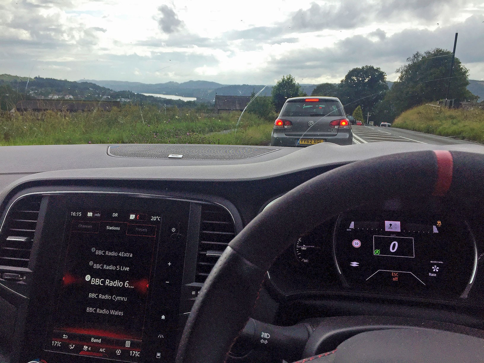 Out early to Kirkstone Pass, a great drive over the A592 in the shadow of Helvellyn, if you get to it before traffic. Megane’s rich performance, steadfast front end and mighty brakes make light work of narrow uphill climb. Murk suddenly descends, spoils things.