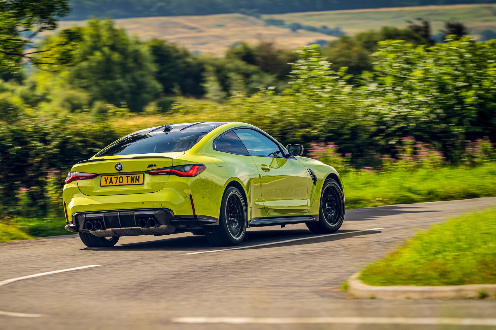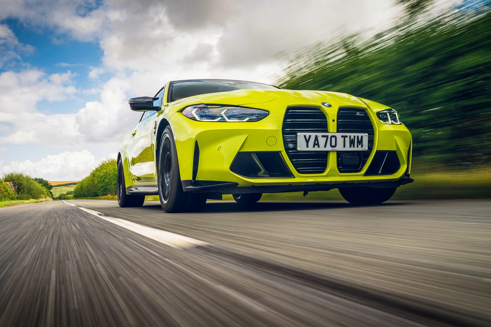 ‘My’ M4 arrived in June. Like all UK-spec M3/M4s it was a Competition. Unlike any other I’ve seen since it was Sau Paulo Yellow (one of two no-cost colour options). The spec was good: no silly-money ceramic brakes, but the extrovert and excellent carbon bucket seats (£3.4k or included in the £6750 Carbon Pack) were present and correct, as were the Technology Pack and four very pretty wheels (the £850 double-spoke 826s, 19-inch up front and 20-inch at the rear). The car looked spectacular but, at £87,745, so too did the on-the-road price.