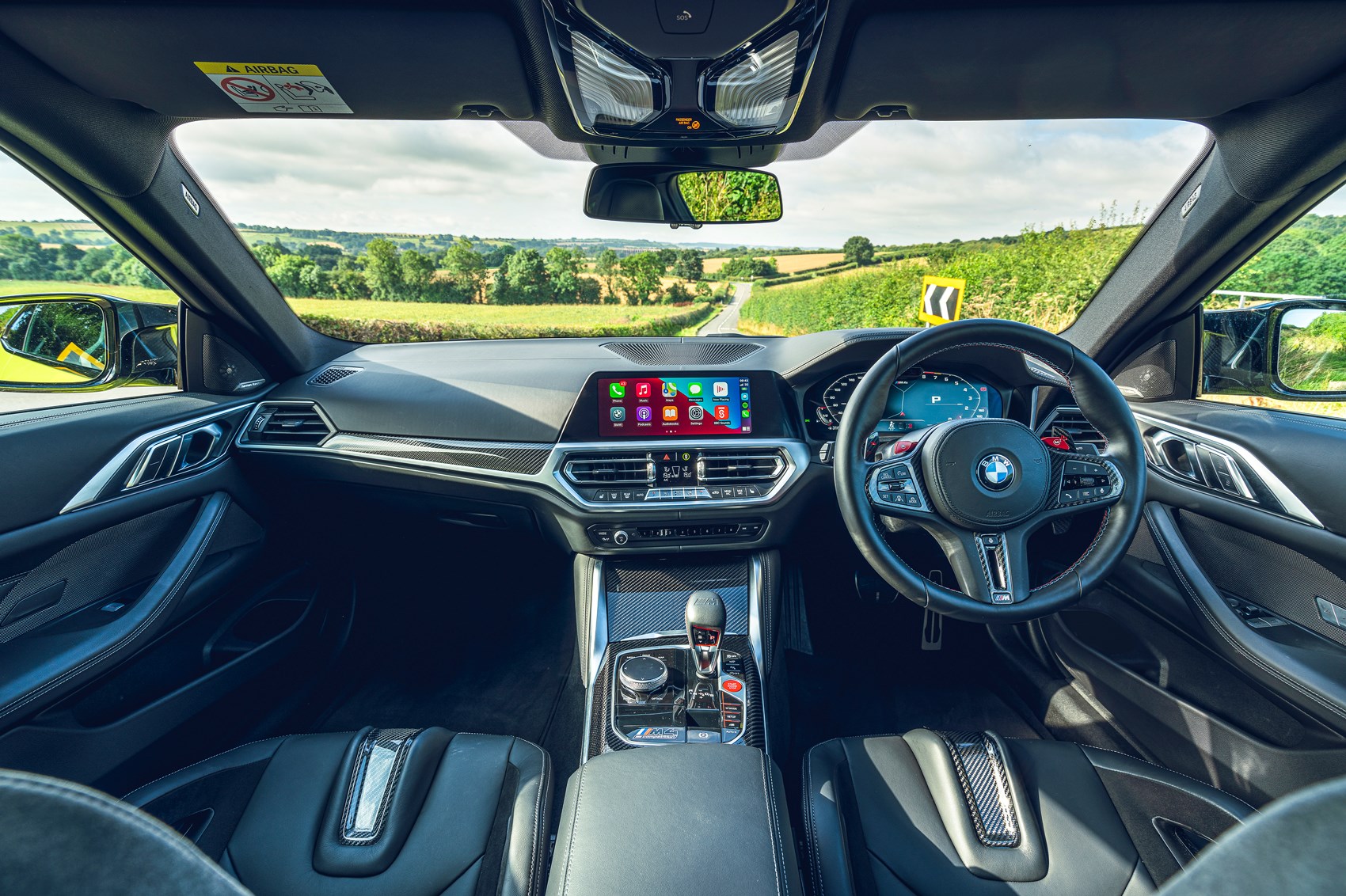 Today should be good: a run down to Bicester Heritage to shoot the February 2022 issue’s cover story (BMW i4 vs M4 vs Tesla Model 3), then drop the Tesla home and get back in time for tea. For all its outlandish performance and sky-high numbers £503bhp, £88k as tested) the M4 is no stripped-out racer. Heated seat and wheel on, set Waze (via CarPlay) as my co-pilot.