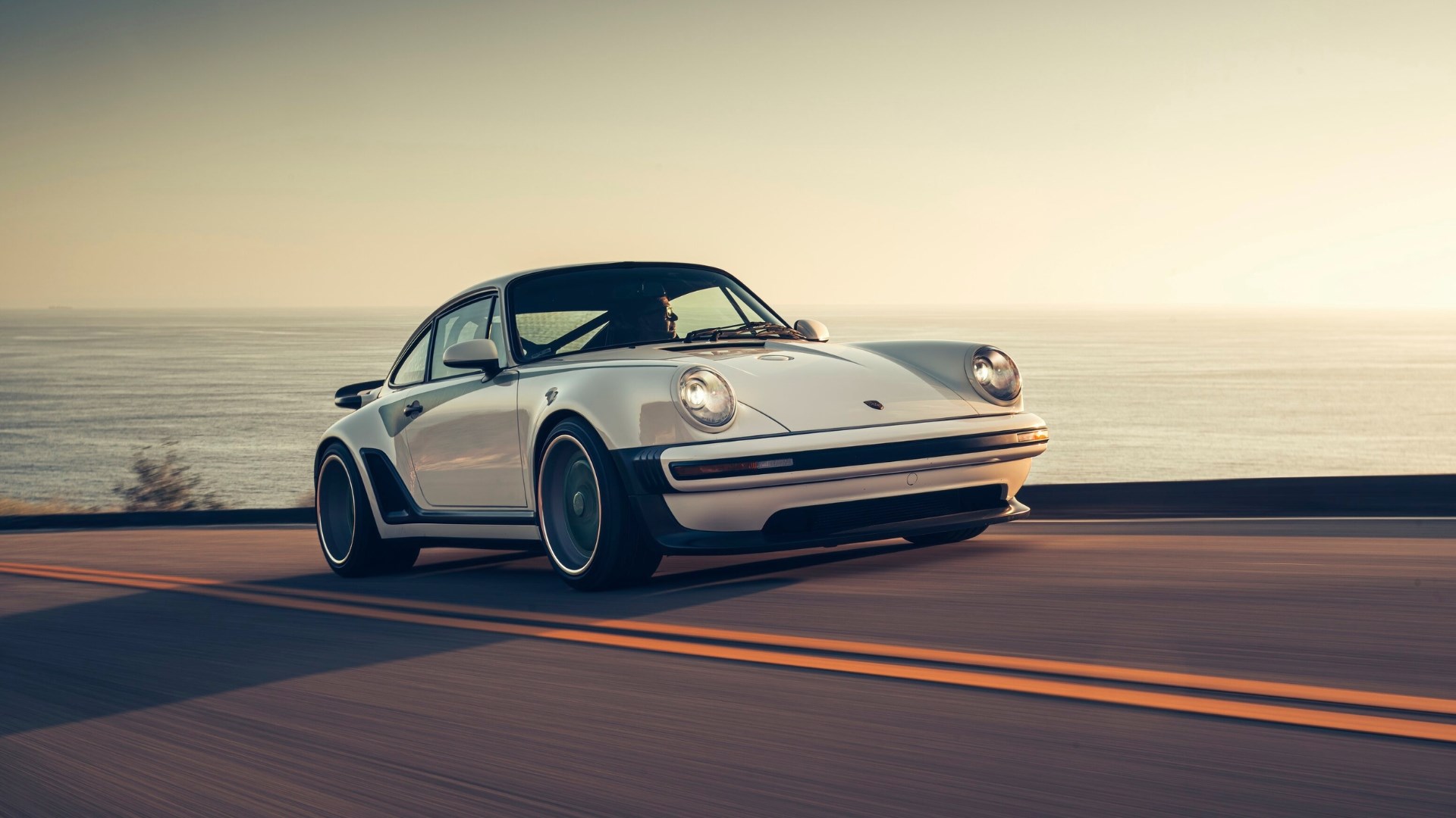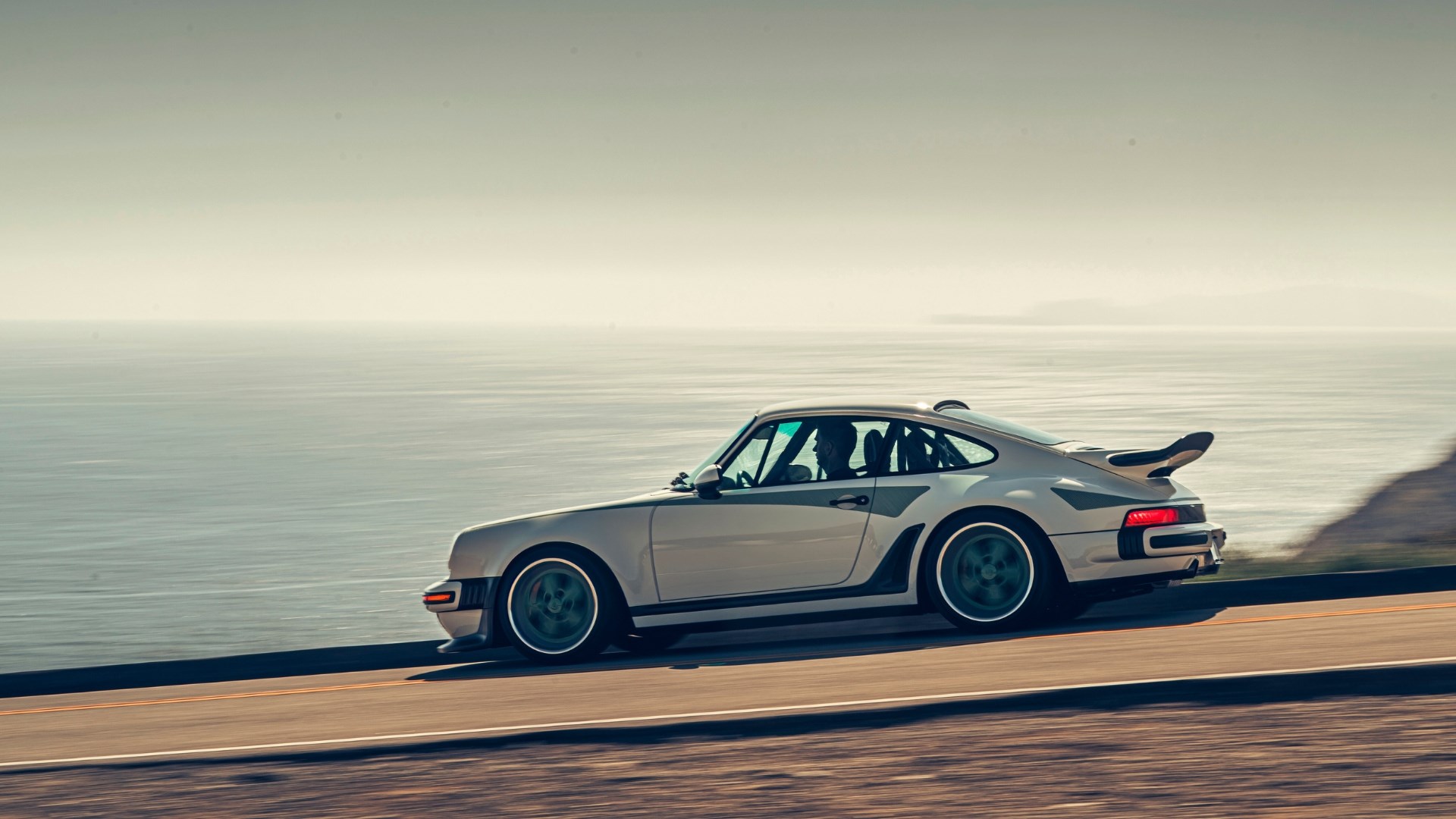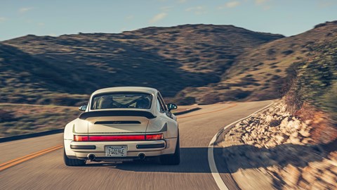Then, just as I’m worried this new turbocharged era might be a little more mono-dimensional and less exciting one than Singer’s first age, amazing things start to happen. I’m pushing harder, the electronics are leaving me to it and the tactility this new/old 911 begins to demonstrate is on a level I’m not sure I’ve experienced before; its mix of monumental mechanical grip and high-definition adjustability confusing at first. I tend to think of the two things as mutually exclusive, but Singer’s inspired blueprinting of 40-year-old 911 dynamics is begging to differ.