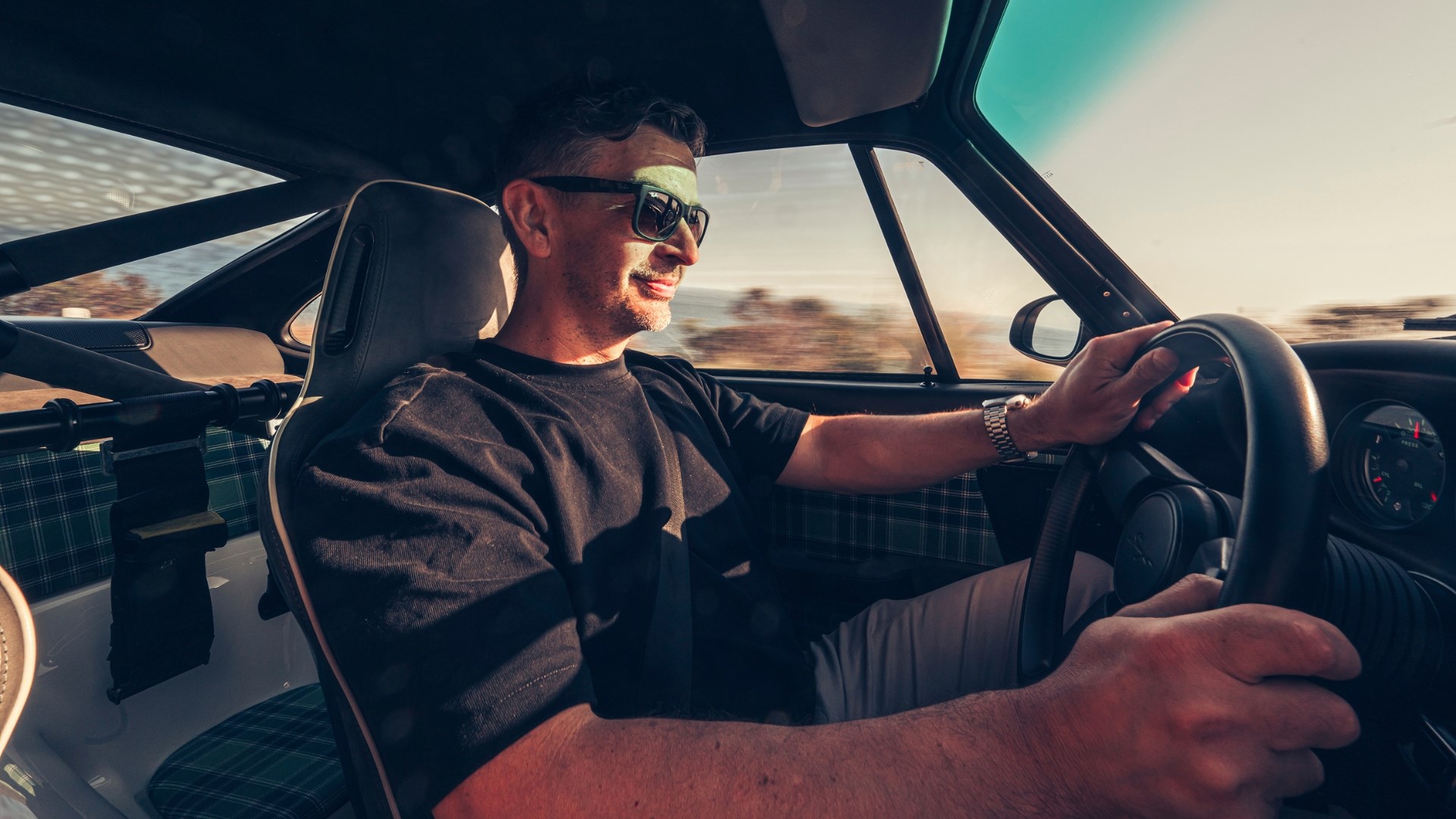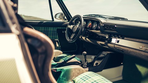 First impressions are all good. The seats – a Dickinson obsession – are perfect; all-day comfortable but so supportive you’re never distracted by having to hang onto the steering wheel mid-corner. Given the grip available on this afternoon’s hot, dry tarmac (tyres are 18-inch 245/35 Michelin Pilot Sports on the front, 295/30 at the back), that’s no mean feat. And because this remains a 964, it’s everything a 992.2 can’t be, so light (circa 1280kg, depending on spec), compact on the road, big on glass rather than pillars and alive with feel through the hydraulically-assisted rack (Singer rebuilds the 964 power steering system with faster gearing, bringing sharper responses and – together with the wider front tyres – a additional heft).