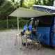In the UK, all models have a wind-out awning on the vehicle’s left side; the folding outdoor table has moved from a pocket in the rear door to a slot under the lower bed platform (much more convenient); the outdoor chairs (now higher backed for improved comfort) are still in a compartment on the tailgate. Al fresco dining on a balmy summer evening was very pleasant.