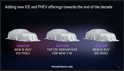 ‘That includes an SUV above the Cayenne in both ICE and PHEV variants, highly emotional ICE derivatives at the upper end of the model line-up to complement our future BEV in the 718 segment, and life-cycle extensions for existing ICE and PHEV models such as the Cayenne and Panamera well into the 2030s,’ adds Blume.