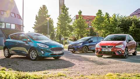 Ford Fiesta vs Seat Ibiza vs Renault Clio triple test (2017) review 27 December 2017 by CAR’s road test team Ford's new Fiesta is dressed for further sales success - can the Renault Clio and Seat Ibiza gatecrash festivities? Read more ...