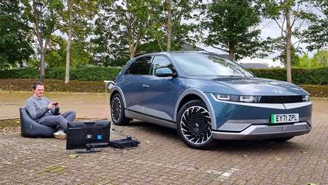Hyundai Ioniq 5 vehicle-to-load: does it work? 21 December 2021 by Jake Groves In a neat bit of role reversal, a parked Hyundai Ioniq 5 or Kia EV6 can act as a generator Read more ...